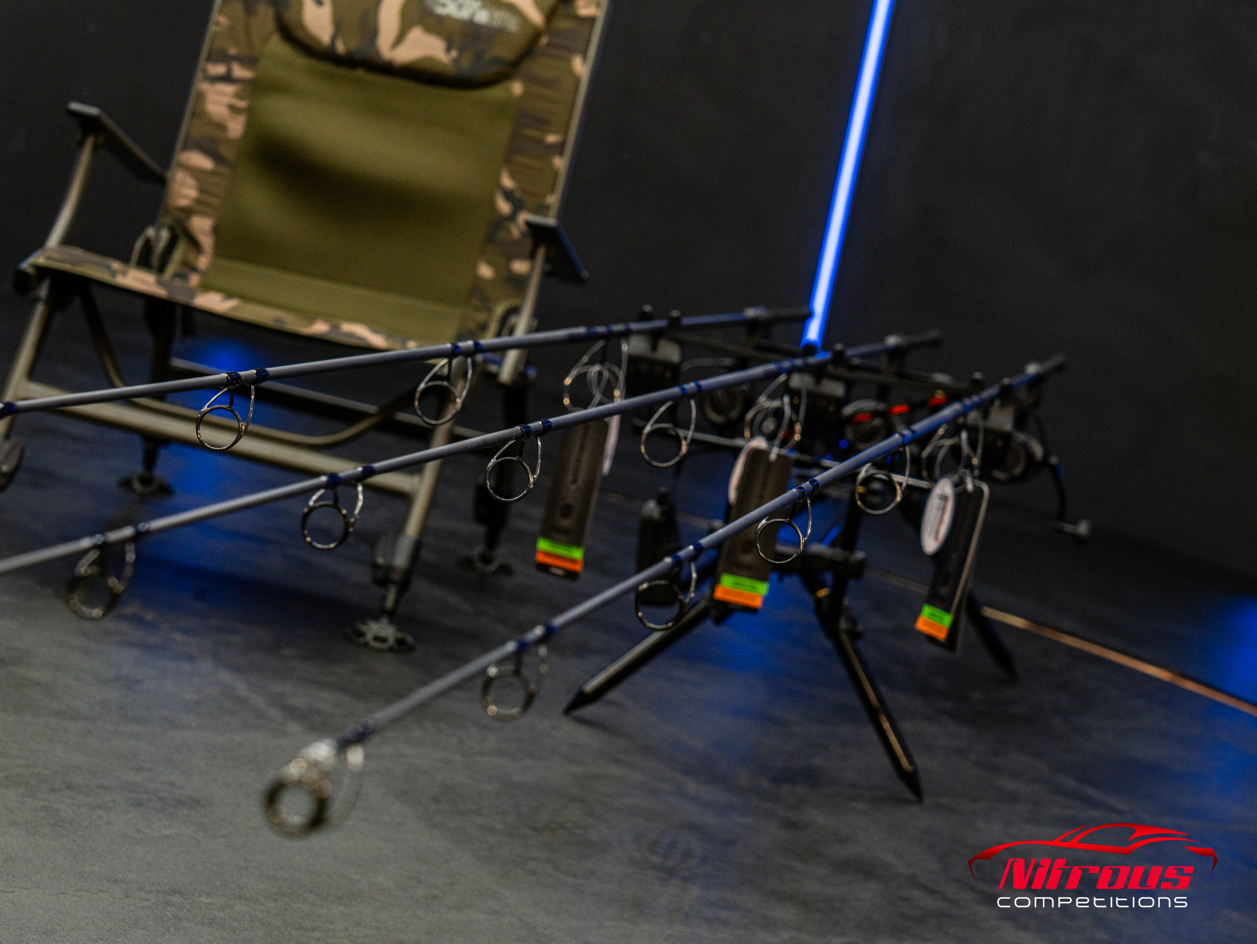 Top-Tier Rod & Reel Set: A multi-rod setup complete with high-performance reels and a stable rod pod.