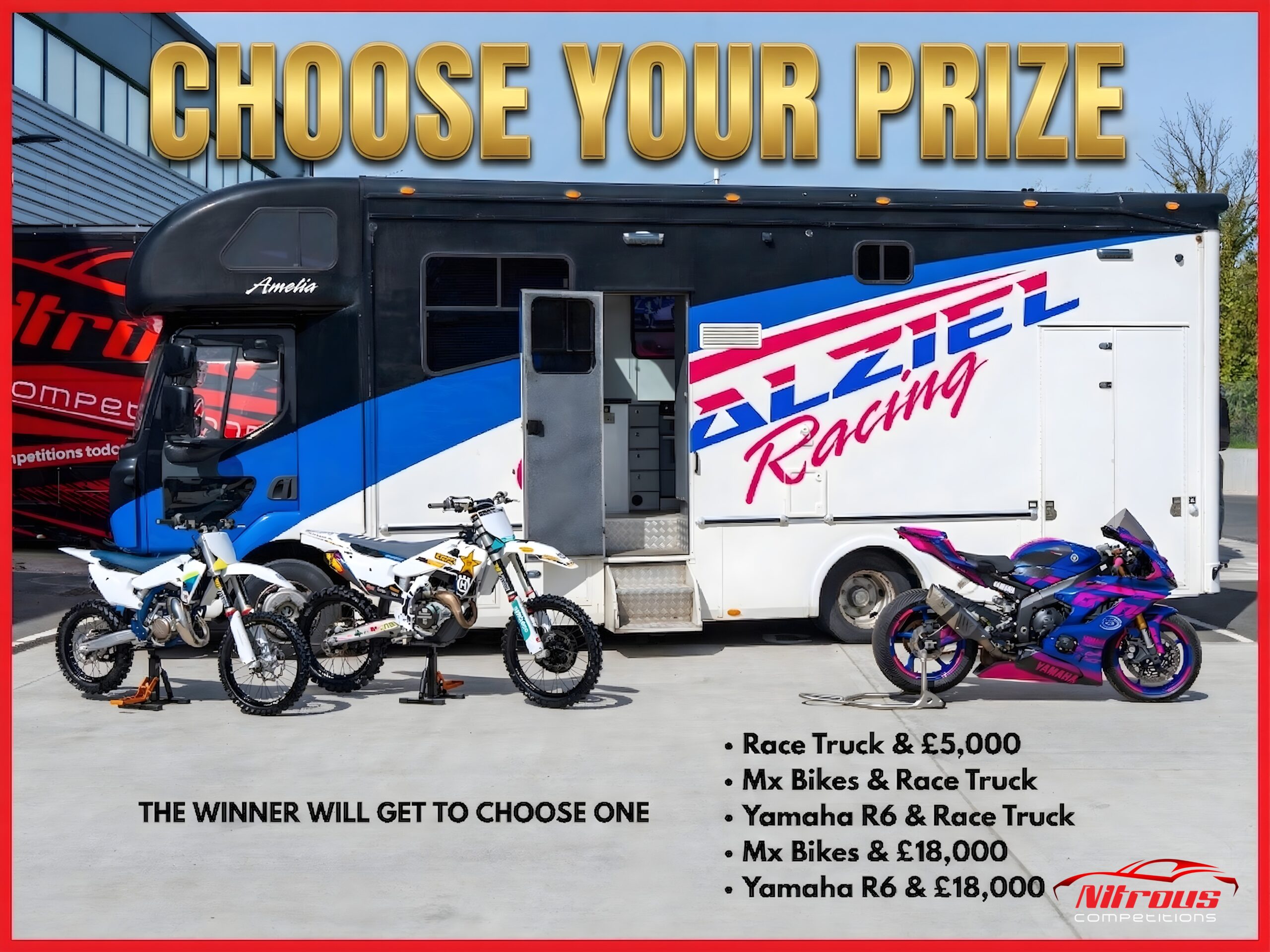 This competition is open to UK residents aged 18 or over. You may enter this competition up to 10000 times. You will be randomly allocated ticket number(s) when ordering and will receive an email confirmation. The total amount of tickets for this competition is (169999). If all tickets do not sell out, the draw will happen on April 28, 2026 regardless. You must answer the competition question correctly to be entered into the live draw. Incorrect entries will not be notified or entered into the live draw. You may enter the competition online, or for free by post by sending your entry to Nitrous Competitions on a postcard. You must have an account on Nitrous Competitions for your entry to be processed. All details on your entry MUST correspond to the details on your account to receive the order confirmation and ticket number. Postal entries received without a registered account cannot be processed. The live draw will take place on Nitrous Competitions Facebook page using Google’s random number generator to select the winning ticket number from all Entrants. This competition is in no way sponsored, endorsed, administered by or associated with Facebook, Apple or Google. By entering the competitions, Entrants agree that neither Facebook, Apple nor Google have any liability and are not responsible for the administration or promotion of this competition.
