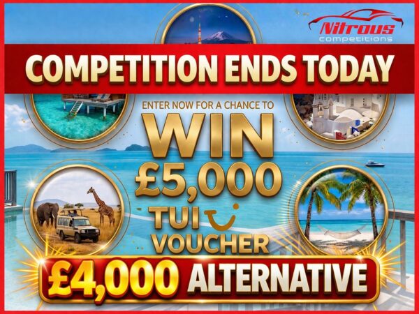 This competition is open to UK residents aged 18 or over. You may enter this competition up to 100 times. You will be randomly allocated ticket number(s) when ordering and will receive an email confirmation. The total amount of tickets for this competition is (750). If all tickets do not sell out, the draw will happen on April 6, 2026 regardless. You must answer the competition question correctly to be entered into the live draw. Incorrect entries will not be notified or entered into the live draw. You may enter the competition online, or for free by post by sending your entry to Nitrous Competitions on a postcard. You must have an account on Nitrous Competitions for your entry to be processed. All details on your entry MUST correspond to the details on your account to receive the order confirmation and ticket number. Postal entries received without a registered account cannot be processed. The live draw will take place on Nitrous Competitions Facebook page using Google’s random number generator to select the winning ticket number from all Entrants. This competition is in no way sponsored, endorsed, administered by or associated with Facebook, Apple or Google. By entering the competitions, Entrants agree that neither Facebook, Apple nor Google have any liability and are not responsible for the administration or promotion of this competition.
